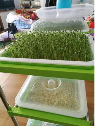 芽苗菜生产采取家庭分散生产和集中生产两种方式,具有工艺简单、生产周期短、无需强体力劳动、经济效益可观等特点。目前已发展19户贫困户家庭分散生产芽苗菜,并在建国村建立了芽苗菜生产微车间进行集中生产。车间现有芽苗菜生产设备50套、400盘,生产种类主要有松柳、麻豌豆、彩豌豆、蚕豆 等8个品种,采取“党支部+微车间+贫困户”的生产模式,由村党支部、村委会组织建立芽苗菜生产微车间,由一名技术人员负责栽培指导,由帮扶责任人、贫困户共同经营管理,所得净收益按户分配。芽苗菜销售主要面向食堂、商场、超市及广大居民,预计每生产周期可收入1800元,每月可生产2个周期,每户贫困户可增收约450元。